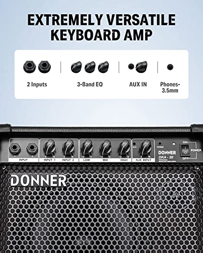【High efficiency and super durability】This 2-channel keyboard amplifier is very versatile with two inputs and separate volume controls for each and every channel. Features come with Gain, Spice up Make a selection Switch, Volume, Treble, Middle, and Bass controls.