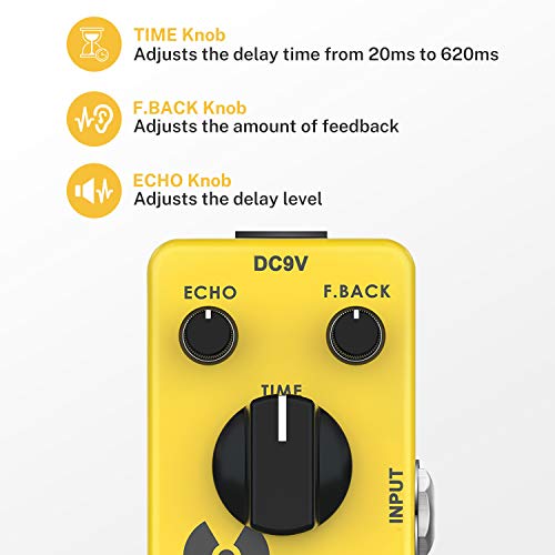 [Flexible Delay Pedal] 20ms to 620ms of delay time. Adjustable delay level and feedback.