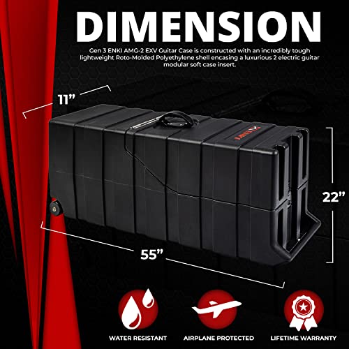SOLID AIRLINE SAFE PROTECTION: To keep your babies safe, the ENKI AMG-2 EXV Guitar Case is constructed with an incredibly tough lightweight Roto-Molded Polyethylene shell encasing a luxurious 2 guitar foam insert system.