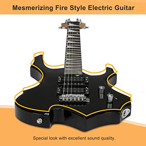 ♫【IDEAL GIFT FOR BEGINNER】- The electric guitar is a perfect gift for beginners and suits intermediate performers too. Come with 1x Flame Electric Guitar, 1x Portable Bag, 1× Shoulder Strap, 1× Amp Cord, 1× Tremolo Arm. You’ll play the guitar right away after opening.