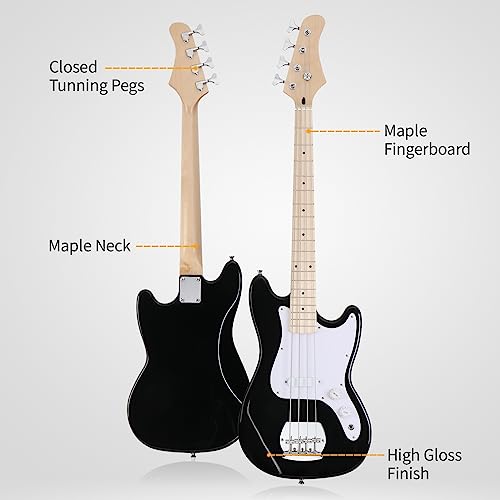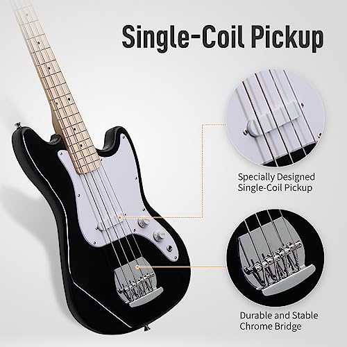 【CAREFULLY SELECTED MATERIAL】Made of naturally dried basswood, the body of the 4-string electric bass provides a better conduction environment for sound. The solid maple fretboard features smooth touch and hard texture for better play feeling and durability.