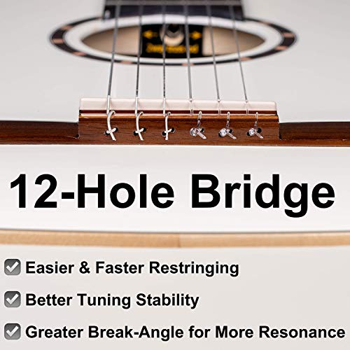 3/4 Body 590 mm Scale – 95 mm Body Depth – 45 mm Nut Width – 18 Frets – 2-Way Truss rod – Chrome Plated Tuning Machines w/ Pearl Buttons – Fan Bracing – 12-Hole Bridge: Provides a better break angle for a cleaner, crisper sound & faster string replacement