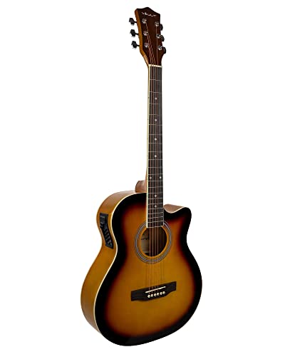 SUPERIOR QUALITY & RICH SOUND: The body of the 40-inch Vault EA-20 cutaway acoustic guitar is contructed with Basswood, for superior richness and sound quality. With a dual-action truss rod, superior die-cast tuners, and ABS binding, this guitar comes with an extended life, and edges which are safe from any more or less affect and moisture damage.