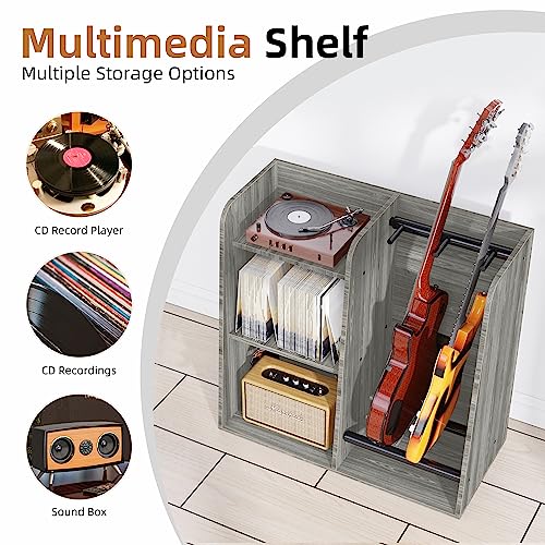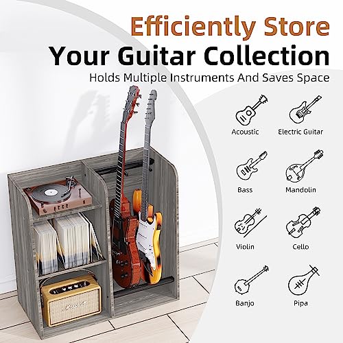 🎻 【 Multi-function Record Player Guitar Stand】This 8 in 1 guitar stand can hold electric guitar, acoustie, bass and other musical accessories in 2 instruments, efficiently utilizing vertical space. Together with the a couple of guitar stands, you’ll be able to also receive a 3-tier record player stand with record album storage, making it the perfect solution for displaying and storing your guitars at home, in your music room, studio, or collection.
